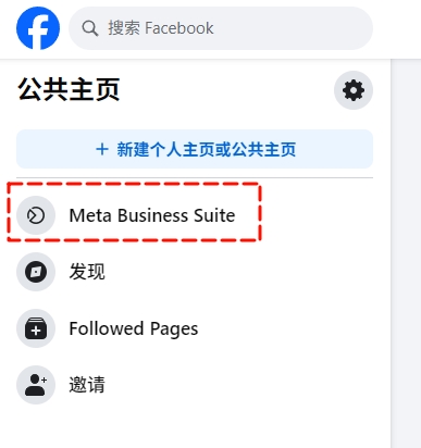 点击“Meta Business Suite",第一次需需要创建自己的公共主页,填写相关信息。