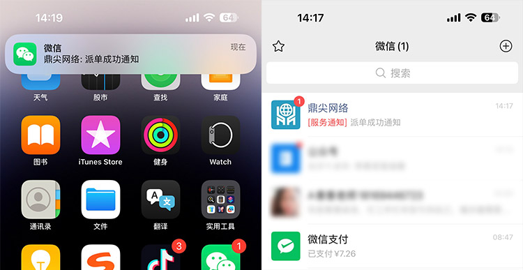 所以,我们更新了微信小程序+公众号的派粉通知。